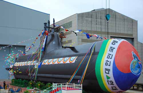 韩国海军第三艘214级AIP动力常规动力潜艇准备下水 资料图片