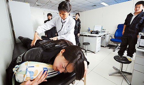 训练中受伤是难免的,简单处理后女队员又要重返训练场。