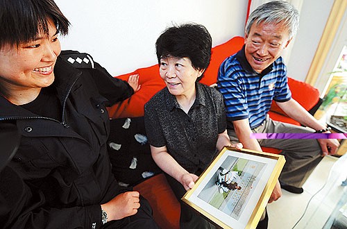 父母看着李亚丽被晒黑的脸,又是心疼又是骄傲。