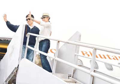 据香港“太阳报”报道,嘉玲、伟仔及好友林青霞昨晨现身不丹机场,准备飞赴印度新德里,展开蜜月之旅。两人于飞机临起飞前20分钟才抵机场,守候的传媒一见两人,即疯狂涌前拍照,三人心情特别开心,笑容满面。新娘嘉玲以悠闲打扮示人,她架着太阳眼镜、戴帽及佩戴珍珠项链,但未见她戴上婚戒。其后他们到机场贵宾房获关员款待,期间嘉玲还合十向传媒打招呼,而当他们过关登机时,传媒一窝蜂冲入禁区不断拍照,但并没有关员驱赶,反而吸引不少旅客围观看热闹。