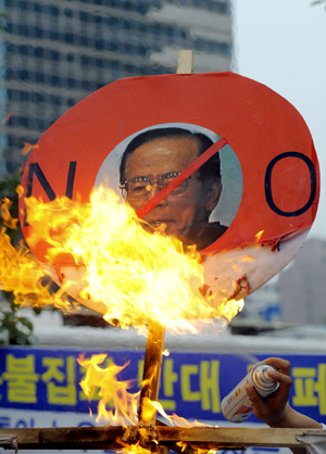 此外,日本媒体的表现也很耐人寻味。《读卖新闻》15日报道称,在北海道洞爷湖举行八国集团同有关国家领导人会议期间,李明博对福田有关竹岛的说法表示“现在很难。希望能等一等”。这条消息传到韩国后,部分网民开始怀疑并指责李明博出卖领土主权,从而引起韩国总统府的恐慌和愤怒。