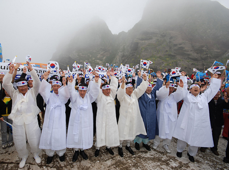 日本公布正式立场后,韩国社会立刻陷入了愤怒的海洋。“守护独岛全国联合会”、“新右派全国联合会”等各市民团体,各大政党等纷纷通过发表宣言、举行记者会、访问独岛等形式,谴责“日本军国主义的侵略行为”,敦促“政府采取驱逐日本驻韩大使”等措施。韩国执政的大国家党16日更是以牙换牙,宣称“历史资料证明,对马岛也是韩国领土。”一些市民连日来在日本驻韩使馆前举行烛光示威,他们高喊“死守独岛”、“还我对马岛”等口号。一些人则向使馆内扔鸡蛋,焚烧日本国旗,甚至割指愤怒写下谴责日本的血书。