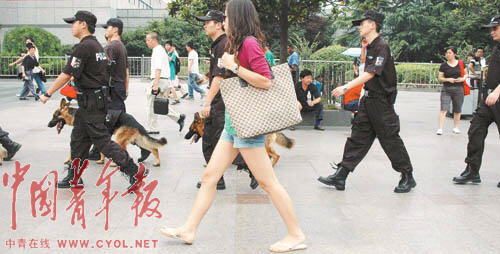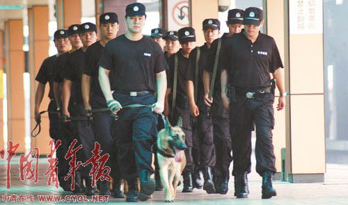 奥运会即将举办,突发事件随时可能发生。为此,上海铁路警方调集铁警精锐进驻上海站,并成立了铁路上海站奥运安保前线指挥部。7月以来,铁路特警全副武装携警犬在上海站、车站广场及与地方接合部昼夜进行巡逻检查。