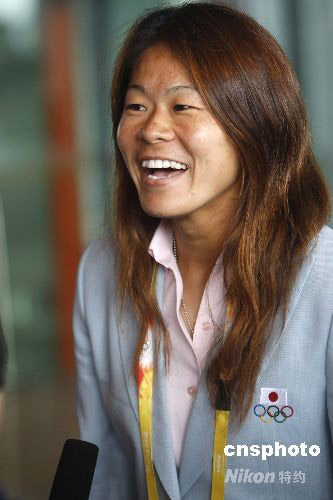 7月31日,日本女足中场核心泽穗希随队抵达北京首都国际机场,她在2008女足亚洲杯期间获得最佳球员称号。中新社发 杜洋 摄