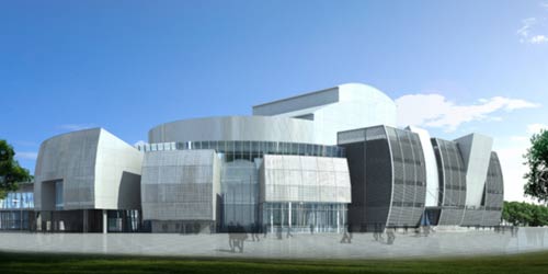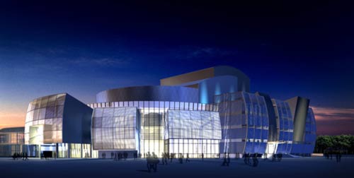 14米高升降舞台:主舞台有三块可升降舞台,其中一号升降台可自由升降的行程达14米,目前是中国最大的升降舞台。三块主升降台之外,在主舞台前侧,还有两块水中升降台。