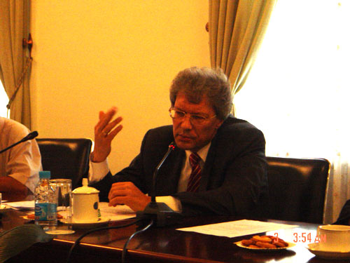 3日下午,俄罗斯驻华大使谢尔盖·拉佐夫应中国国际问题研究基金会之邀,围绕谁是格俄冲突发动者和受害者、冲突的由来、冲突的国际背景、俄承认南奥塞梯和阿布哈兹独立的法理依据、国际社会反应、冲突前景等七大问题在基金会发表演讲。中国国际问题研究基金会理事长、上海合作组织首任秘书长、外交部前副部长、前驻俄大使张德广主持演讲会。