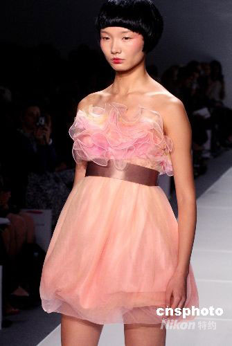 图为世界名模参加中国女装设计师罗峥作品展示。中新社发 钱兴强 摄