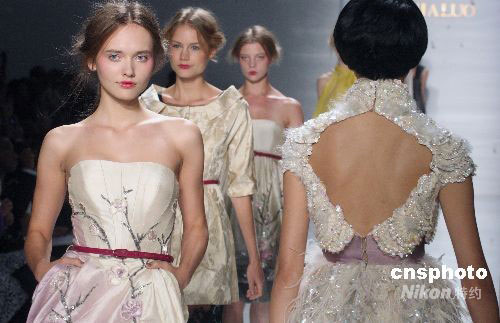 图为世界名模参加中国女装设计师罗峥作品展示。中新社发 钱兴强 摄