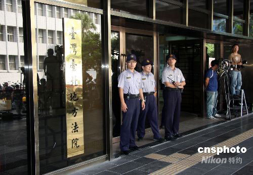 图为法警、记者一早就守候在台北地方法院正门。中新社发 陈立宇 摄