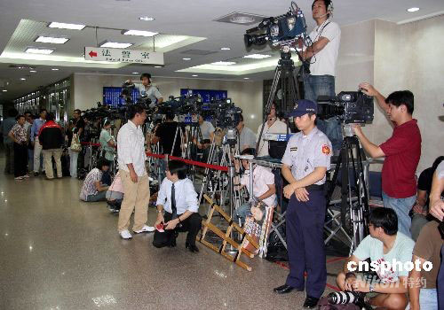 图为一早就守候在台北地方法院内的大批媒体记者。中新社发 陈立宇 摄