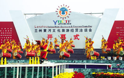 当天的开幕式现场洋溢着热烈、喜庆的氛围,飞天、羊皮筏子、水车、秦腔这些代表着黄河文化的元素传达着本届盛会的内涵,喷泉、礼花、极具现代感的舞台设计表达着兰州人民继续解放思想,深化改革开放,努力实现兰州经济又好又快发展的信心和决心。
