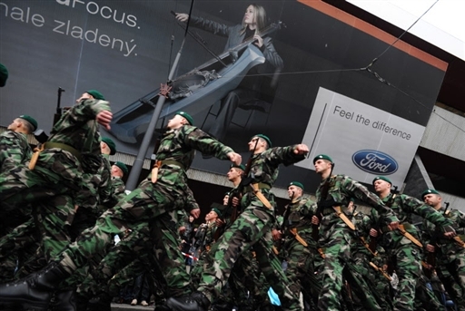 斯洛伐克士兵在布拉迪斯拉发参加阅兵式。