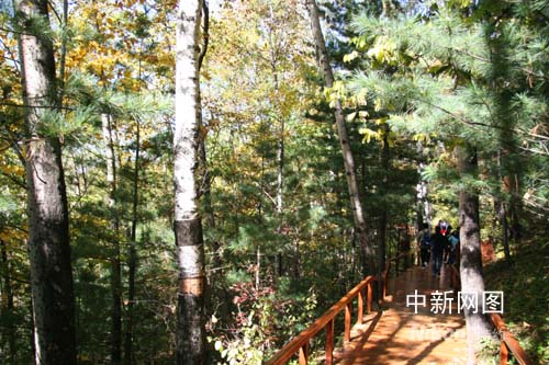 火山森林由大小不等的7个山坑组成,总面积达6万多公顷。这些火山口由东北向西南分布,在长40公里、宽5公里的狭长形地带上,共有10个。它们的直对?00米至550米之间,深在100米至200米之间。其中以3号火山口为最大,直径达550米,深达200米。在火山口坚硬的熔岩上,布满了层层红松、水曲柳、紫锻、黄菠萝等。此外,这里还生长着许多珍贵的动物,例如:东北虎、黑熊、马鹿、獐子、孢子等。
