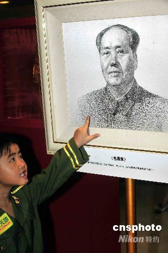为庆祝国庆,香港一商场于二十五日起,展出国家级著名发绣大师孟永国十幅著名单色及彩色发绣画。中新社发 谭达明 摄
