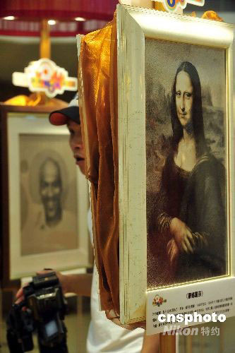 图为展出作品《蒙娜丽莎》(九四年)及《篮球巨星乔丹》。