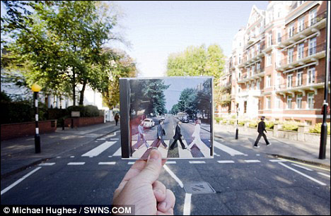 甲壳虫乐队的《Abbey Road》专辑封面与伦敦街景的结合