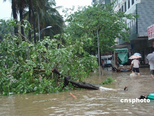 图为海口一棵风景树被刮倒。中新社发 付美斌 摄