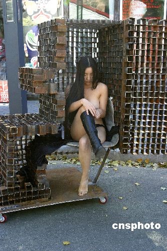 图:海容天天裸体坐铁笼展示行为艺术
