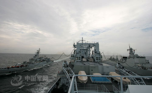 10月9日,南海舰队某作战支援舰支队同某驱逐舰支队数艘驱护舰,在二级海况下成功组织了高难度的“两横一纵”海上补给训练。他们克服风大流急的影响,经过多次协同演练,航行中的补给对接时间比最初缩短了10多分钟,海上应急支援能力得到提高。 中国军网发 绕燕文摄