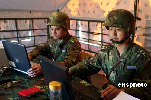 侦察队员正在进行网上对抗演练。中新社发 崔成俊 摄