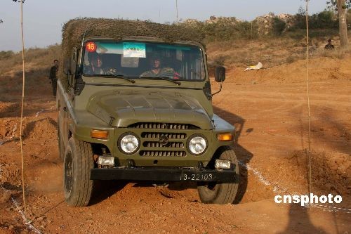 驾驶侦察车通过障碍。中新社发 崔成俊 摄