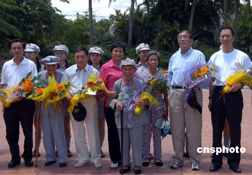 2007年6月26日,著名导演谢晋和演员牛犇代表剧组向红色娘子军老战士王运梅、陈振梅赠送慰问金、奖章和证书。为庆祝中国人民解放军建军80周年,中央电视台15集大型系列片《祖国不会忘记》剧组专程来到红色娘子军的故乡海南琼海市摄制有关专题。当天中午,曾执导故事片《红色娘子军》的著名导演谢晋和该片演员牛犇随剧组来到红色娘子军纪念园再会娘子军老战士。中新社发 蒙钟德 摄