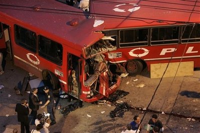 当地警方表示,两辆公交车在一个路口迎面相撞,其中一辆公交车立即起火燃烧,猛烈的撞击和迅速蔓延的火势造成这辆公交车上的司机和3名乘客死亡。