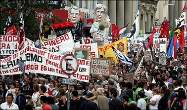 布什同日晚上到达乌拉圭,并会见总统巴斯克斯。首都蒙得维的亚有6000多名示威者上街,两个麦当劳快餐店在示威中被严重破坏。