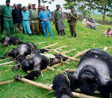 山地大猩猩遭枪杀可能是为了警告当地的环保人士,环保人士想阻止人们为商业目的而破坏大猩猩的天然居住地热带雨林。一直在努力保护山地大猩猩的环保人士利克伊称:“我们认为至少有8只大猩猩被枪杀,这是一个非常令人担心的动向。就环保意义上来说,这样的数字意味着很大的一个比例。”