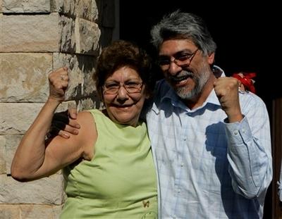 24日,巴拉圭当选总统费尔南多-卢戈与姐姐梅赛德斯-卢戈合影。
