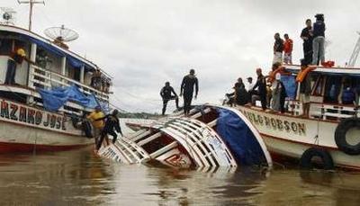 中新网5月6日电 综合报道,当地时间4日凌晨,巴西一艘渡轮在亚马逊河支流之一的索利蒙伊斯河上倾覆。5日,营救人员在距离渡轮沉没地区的较远处又发现了两具尸体,使此次渡轮倾覆事故的死亡人数上升至17人。