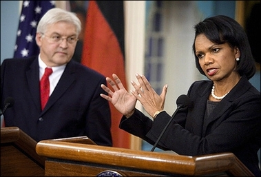 她于周五在与德国外长举行的联合记者会上首次对伊拉克研究小组的伊拉克研究报告作出回应。她承认当前伊拉克国内局势使美军的处境“十分艰难”,但她并不支持报告中提出的与伊朗,叙利亚合作解决伊拉克危机的建议。她再次维护总统布什提出的中东地区民主进程方案,称这一方案在美国外交政策中占据“中心地位。”