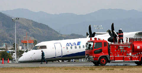 据悉,这架从大阪飞往高知的庞巴迪型班机载有五十六名乘客,加上机组人员共有六十人。原定当地时间八点五十五分在高知机场着陆。然而着陆之前,驾驶员突然发现飞机的前着陆轮竟无法弹出。飞机着陆失败后重新拉起机头爬升到空中,进行盘旋。全日空公司在着陆前一刻接获险情,立即进入紧急状态。连日本首相官邸危机管理中心也紧急设立了情报联络室。NHK电视台赶赴现场进行直播。在众目睽睽之下,飞机在机场上空放空了存油后再度迫降,先用后轮落地,努力维持一段机体平衡态势后,以机头部分强行着地,顿时擦出一片火光。最终在两千五百米跑道的末端停稳。所幸在此过程中未发生爆炸或火灾,消防车辆立即赶上进行喷射,机上人员经应急滑梯迅速撤离,没有发生人员受伤情况。