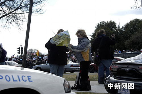 记者在跟随游行队伍采访时发现,尽管规模宏大,但今天的游行示威十分和平理智,没有发现与警察冲突的现象。然而,与此相反的是,也有一些支持伊拉克战争的人在另外一面示威,他们的标语是:“显示力量是硬道理”、“将圣战进行到彻底打败伊拉克”、“上帝保佑美国兵”。
