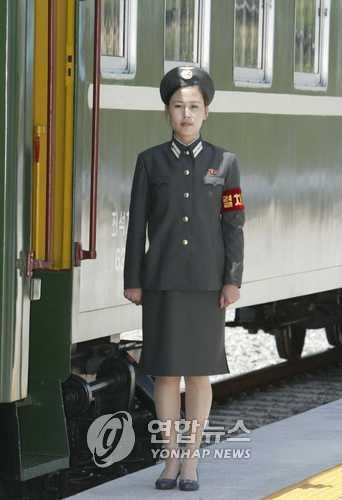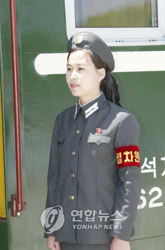 组图:朝韩列车历史性试运 朝鲜女乘务员引关注(2)