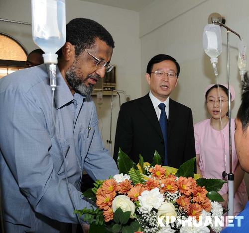 祖贝尔·哈桑当天在中国驻苏丹大使李成文的陪同下,到医院探望了正在那里接受治疗的4名获救中国工人。他首先向获救工人表示慰问,并希望他们早日康复。他还对另外5名中国工人在绑架事件中不幸遇害表示哀悼。