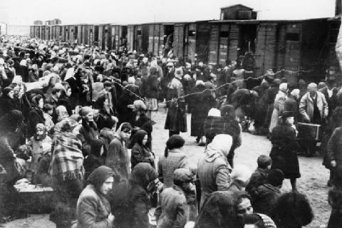 法西斯用火车把犹太人从欧洲各国押运到奥斯威辛集中屠杀。