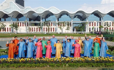 2006年APEC峰会时,领导人们穿上俗称“奥黛”的越南服饰,女士的衣服看起来很像中国旗袍。