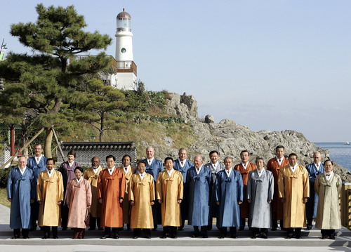 2005年APEC峰会在韩国釜山举行,韩式大褂“图鲁马吉”是此届峰会的领袖服装。
