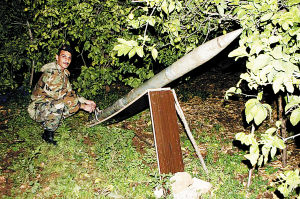“卡桑”火箭——哈马斯近年来自行研制的一种土造武器,精确度欠火候,很多时候是掉哪儿算哪儿。