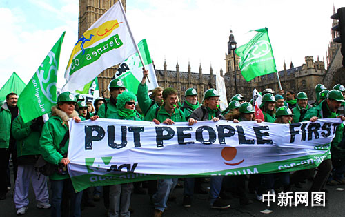 数万人伦敦游行示威 吁G20领导人"以人为本(图)