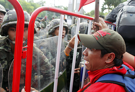 泰国反独裁民主联盟支持者11日包围了总理阿披实位于首都曼谷的住所。另外,至少数百名反独联示威者强行冲进东盟系列峰会媒体中心。