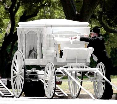 中新网7月1日电 据英国《每日邮报》报道,“流行天王”迈克尔•杰克逊的生与死都与梦幻有关。不同于常人用黑车出殡,杰克逊的遗体届时将用一辆白色马车运抵葬礼。