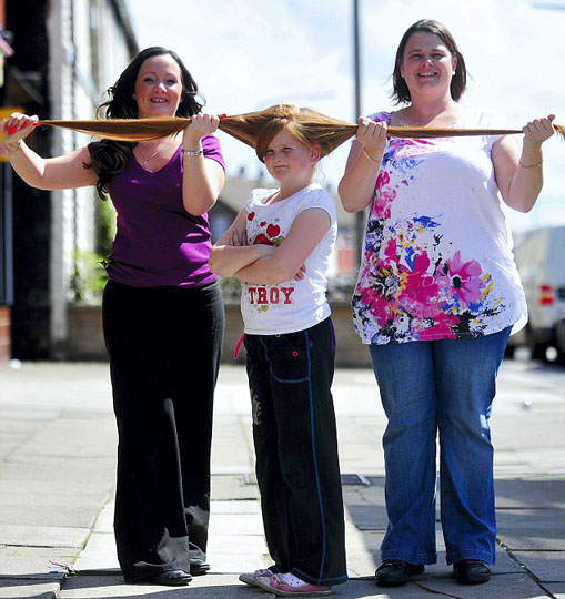 中新网8月25日电 据英国媒体报道,英国一个8岁小女孩近日终于剪掉了她自出生以来一直留到现在的一头秀发,剪发时她的辫子已经将近1米长。