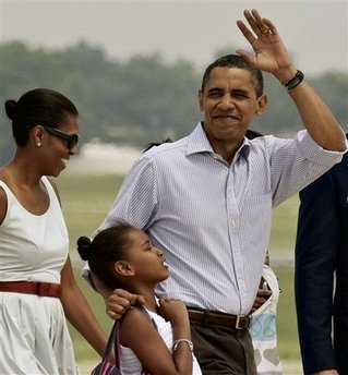 奥巴马偕家人度假 女儿爱撒娇夫人改保守装(图)(5)