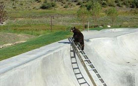 美国一黑熊被困滑板场地 自己爬梯子逃出(组图)(3)