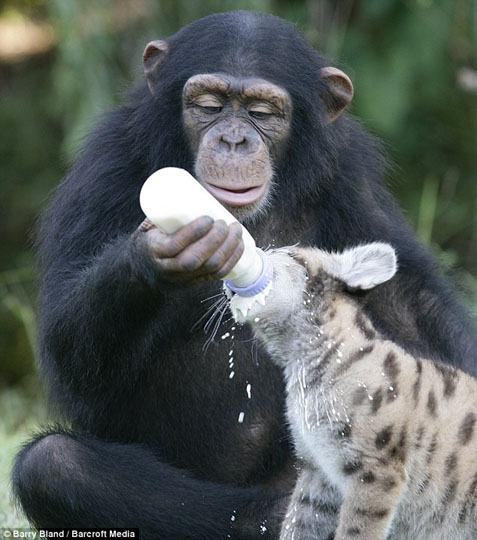 美国大猩猩照顾小狮子 喂奶拥抱尽显母爱(组图)(2)