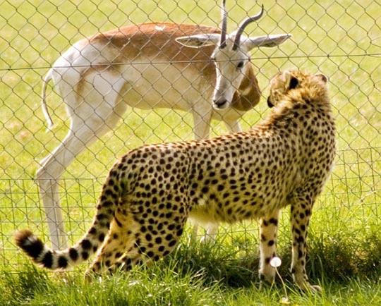 英国豹子和羚羊成好朋友 隔围栏耳鬓厮磨(组图)(2)