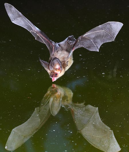 电光石火的瞬间 摄影师拍下蝙蝠饮水画面(组图)