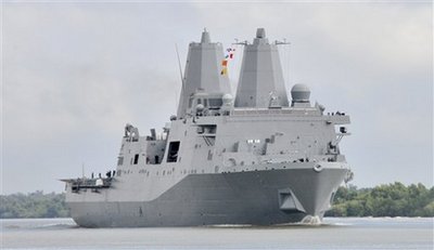这艘军舰是美国圣安东尼奥级船坞登陆舰的第六艘,全长二百零八米,船员二百九十名。来自世贸中心的钢材于被用于制造“纽约号”上的两栖登陆平台,“它可以让一支七百人的海军陆战队在任何地方登陆”,美国海军少校柯蒂斯·琼斯说。目前“纽约号”的主要任务,正是将美国海军部署到反恐行动现场。